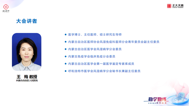 为进一步提高风湿免疫疾病预防和规范化诊疗水平,深入探讨风湿免疫疾病临床实践中的难点与热点问题,由中关村益心医学工程研究院主办的“勤学勤练-中青年医师病例展演”于2025年12月29日以线上的形式召开,旨在通过会议提高风湿免疫疾病诊疗水平、推进风湿免疫疾病学科能力建设、促进科研协作和学术交流、推广适宜技术等起到积极的推进作用,通过搭建一个共享、共赢的临床研究平台,发现问题并寻求解决问题的方法和路径,造福广大患者。