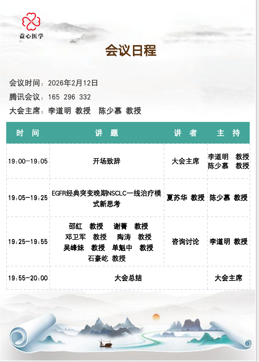 基于此,由中关村益心医学工程研究院主办的“2026肺癌靶向规范化治疗巡讲”于2026年1月-6月预计开展15场线上/线下会议。本次会议旨在汇聚国内肺癌领域的顶尖力量,凝聚各方智慧,通过专题研讨、病例分享等多种形式,为广大医务工作者提供一个学习、交流、合作的契机,最终实现医疗技术进步与人类健康福祉的共赢。